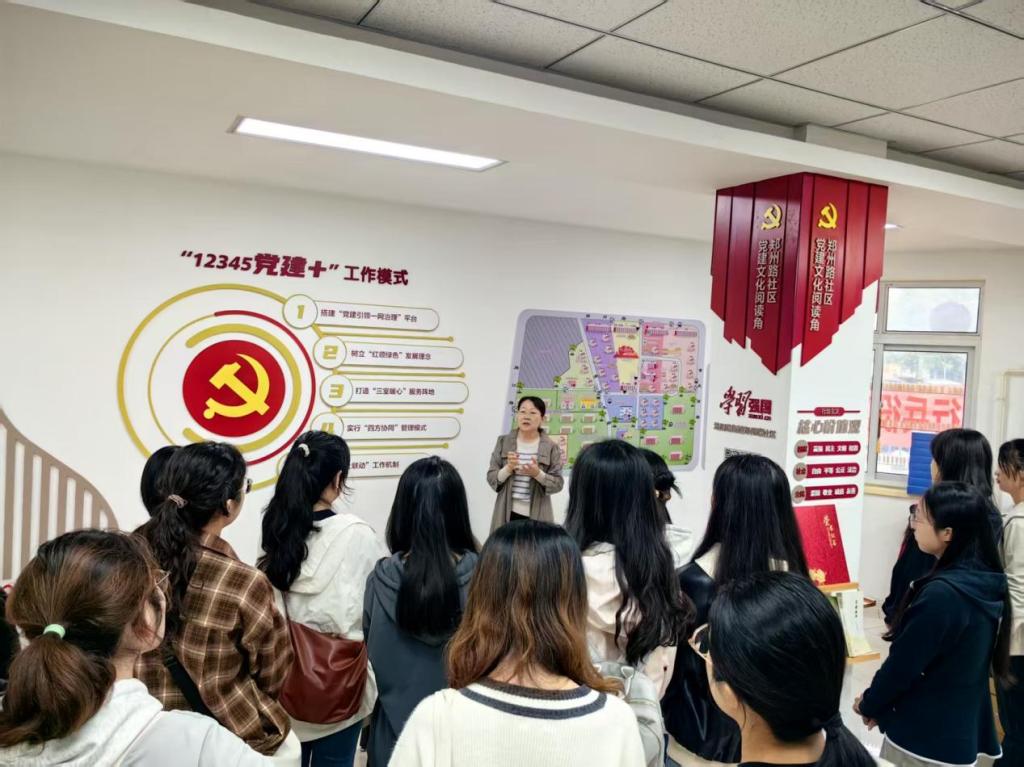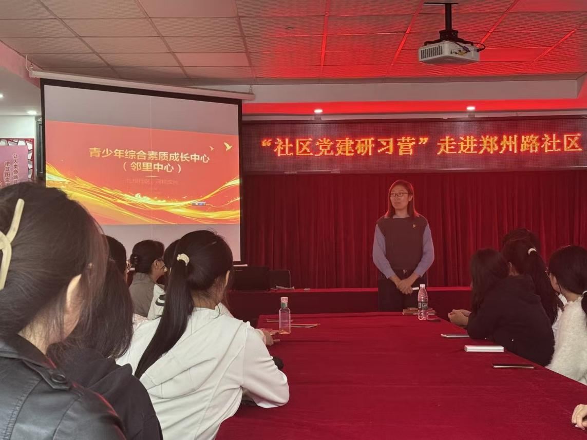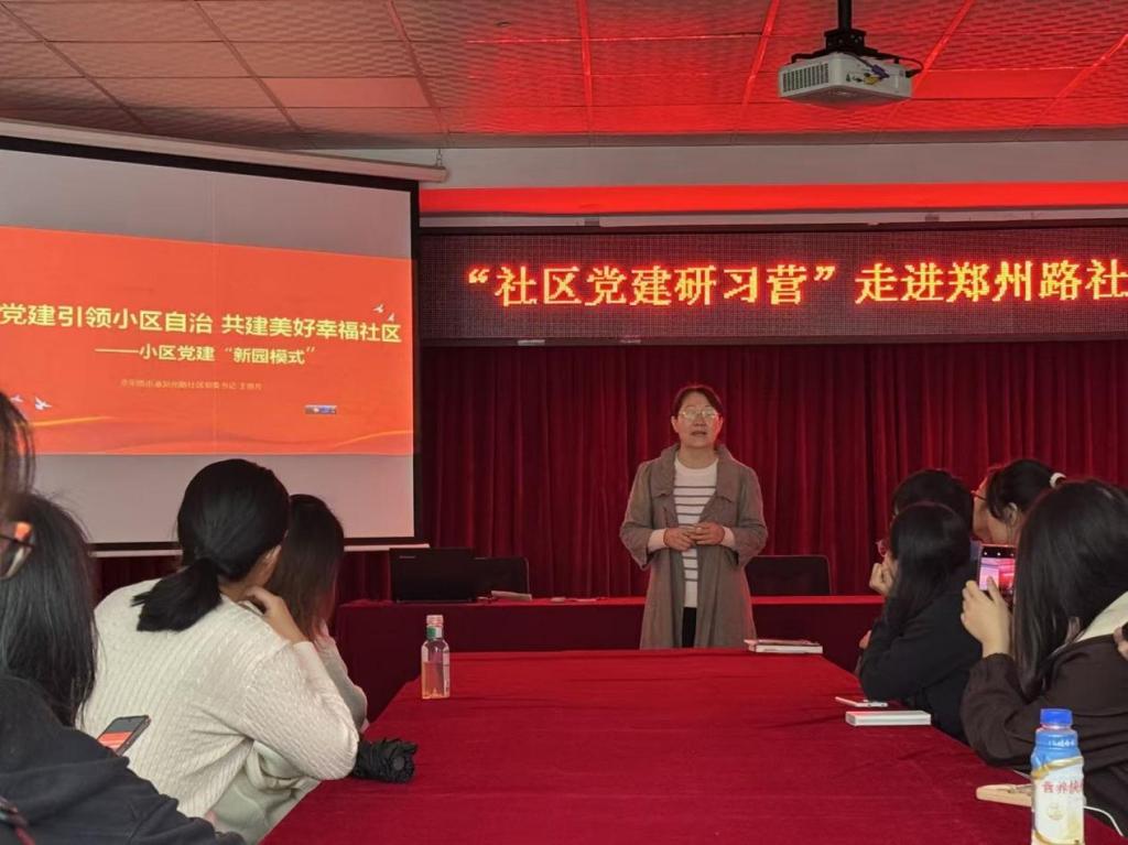 2025年10月12日上午,青岛大学思政大课堂中心联合青岛城市基层党建实训基地(红景新区核心区),在市北区洛阳路街道郑州路社区居委会举办第三次共建活动。青岛城市基层党建实训基地副主任杨健、郑州路社区党委书记王艳芳、市北区海度艺术培训学校校长陈斐斐共同参与,活动通过“实地参观社区党建阵地、听取社区党建专题讲解、座谈交流党建与‘大思政’课融合”三大核心环节展开。